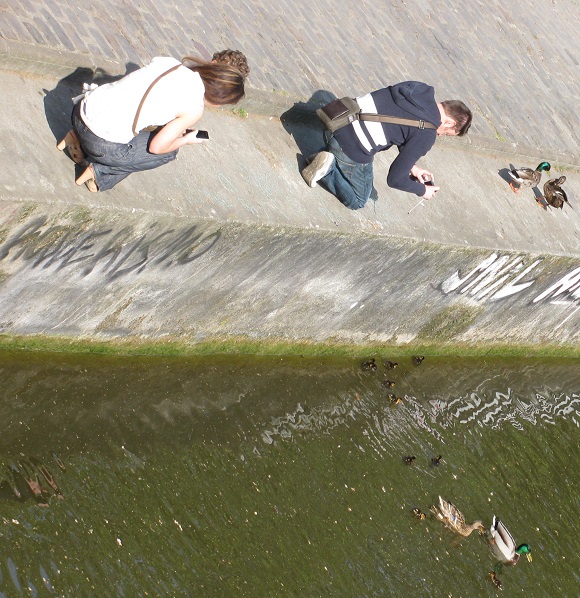 I look out the window to the people on the street, wondering if they are as scary or potentially dangerous as Sue might imagine. It’s a surprisingly warm and sunny October Sunday afternoon. From my 4th-floor corner apartment I have an unhurried view of browning linden leaves and beyond them Canal Saint-Martin, where tour boats pass by and where cobblestone quays stir with pedestrians flocking to the Sunday pedestrian zone that starts at the next block. From here there doesn’t appear to be much anti-anything out there.