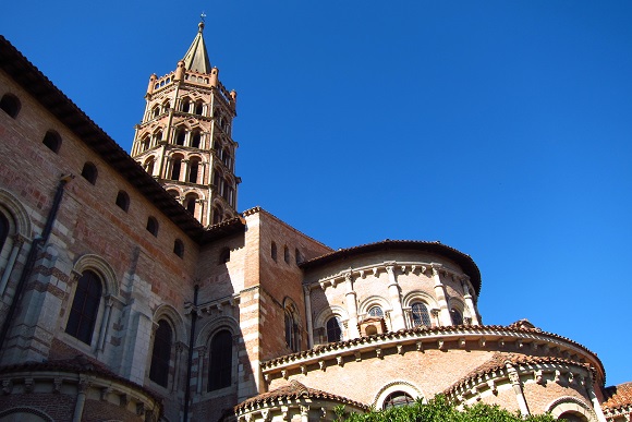 From Place du Capitole, the view down rue de Taur toward the brick lacework of the bell tower of Saint Sernin Basilica is an open invitation to discover one of France’s greatest churches from the Romanesque era. On the morning of day two I headed down that road and began my sight-sitting day with coffee and a view of the basilica’s back end from a table beneath the linden trees at Café St. Sernin.
