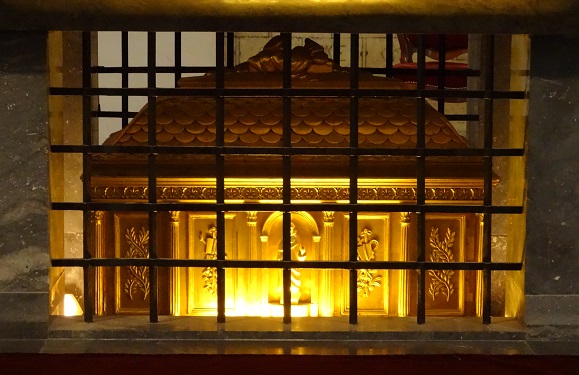 Lit by daylight through beautiful stained glass, the Jacobins Church is split into two naves by seven stone columns that blossom to the ceiling like palm fronds. The relics of St. Thomas Aquinas (1225-1274) stand as the centerpiece in an otherwise attractively sparse church, yet nowadays, as with the relics at St. Sernin, those of St. Thomas are passed by with less interest than a third-rate Picasso.