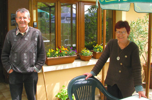 My vulture education much improved, I rode on to Chez Armand where Gisèle Costecalde had provided coffee and shelter the previous day. I thanked her for her kindness, and she and her husband allowed me to take a picture of them as a memento.