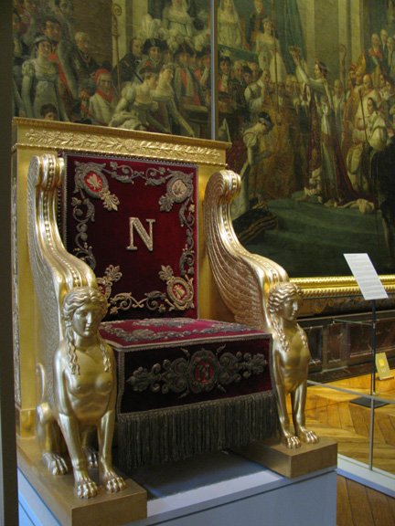 “You have close friends now?” I said. “How nice for you. Anyway, you really should see the thrones, if not by Easter then at least by May, especially to get an uncrowded view of Napoleon’s throne in front of David’s painting of the Coronation of Napoleon.”