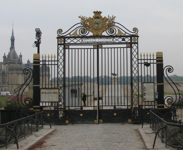 The gate announces the Condé Museum that lies within the chateau.