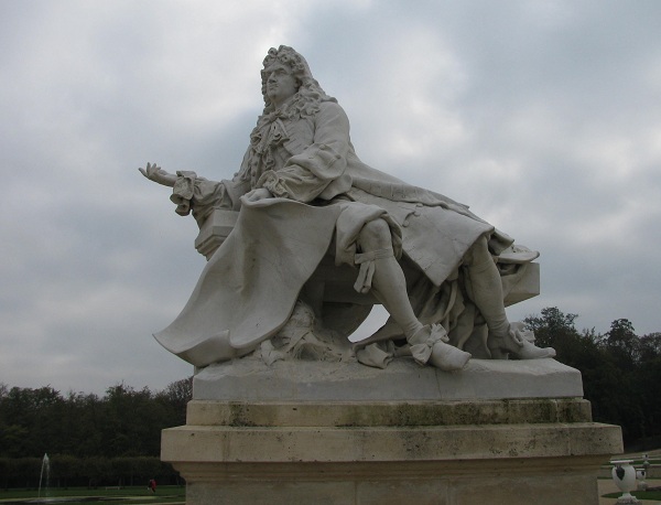 They were designed by Andre Le Notre, the father of French gardens and have been restored in the past few years to their 17th-century geometric glory as part of a vast on-going restoration project of the entire domain. Here is Le Notre holding plans for the project…