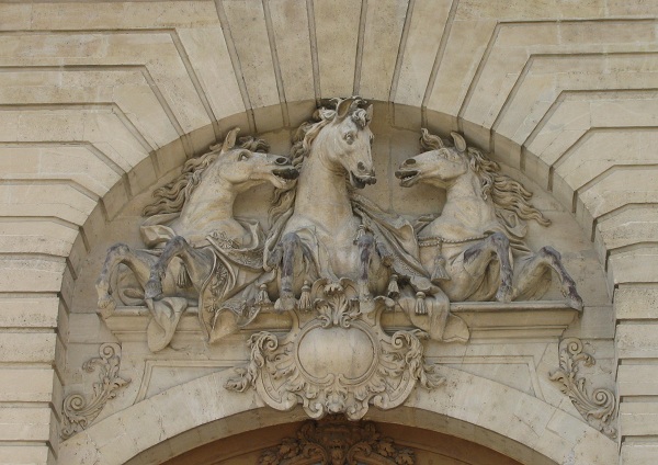 Chantilly is also famous for its palatial stables, where equestrian shows and presentations are given. These sculptures appear above the entrance to the stables.