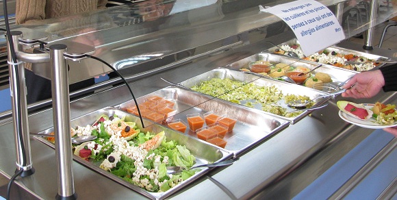 Chef Baconnier was filling the appetizer trays at the salad bar that had been placed in the middle of the cafeteria as I examined the options. I looked up at him. He had the apprehensive smile of a man waiting for someone to tell him what I thought of his work.