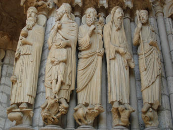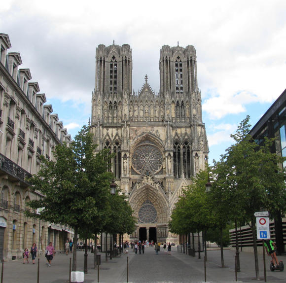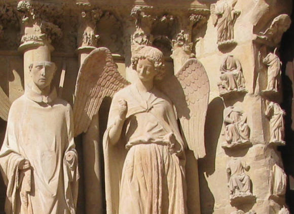 In 469 Clovis, King of the Franks, was baptized in Reims by Bishop-cum-Saint Remi. That fundamental consecration of the marriage of Church and King in France, is shown on the façade of Notre-Dame de Reims as it is in many other cathedrals in France. (The marriage was formally dissolved during the French Revolution. There were attempts at national therapy to patch things up in the 19th century, but for over a hundred years now the marriage has been declared over, with the separation of assets clearly identified by the law of 1905.)