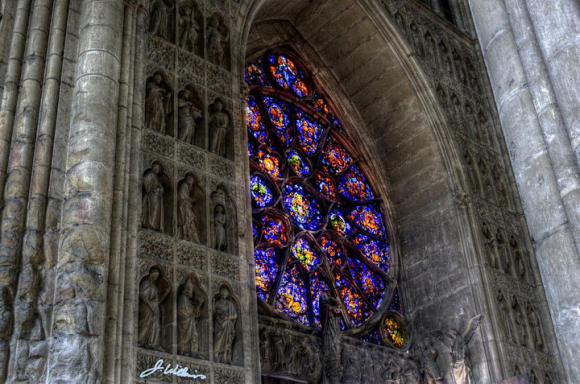 Visitors arriving by car will find that the frontal approach leading to Rue Rockefeller and then the vast square in front of the cathedral is regal indeed. American industrialist John D. Rockefeller got the honors of a street named after him in thanks for the enormous funding he provided in the 1920s to rebuild the cathedral which had been heavily damaged by bombardment during WWI. (Another sizable donation by the American industrialist Andrew Carnegie allowed for the construction of the beautiful Art Deco public library that’s near the cathedral.)