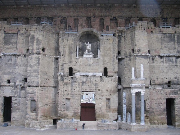 You see, I had been to Orange before while backpacking through Europe on some ridiculously low number of dollars a day. The number stayed especially low that particular day in Orange because I had managed to see the Roman Theater without paying the entrance fee by climbing up the hill behind the hemicycle and standing on the edge of the cliff for a glimpse.