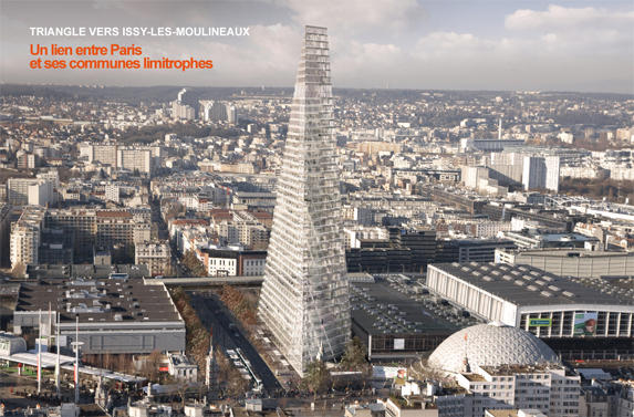 Following the municipal elections of 2008, Mayor Delanoë’s Socialist Party had an absolute majority in the city legislature. He immediately began to push on Parisians plans for skyscrapers at six locations in Paris. On September 25 that year, the Triangle Tower project was presented at City Hall to an audience of dazzled journalists. [Editor’s note: the official website for the Triangle Tower as planned by the architectural firm Herzog & de Meuron can be found here.]