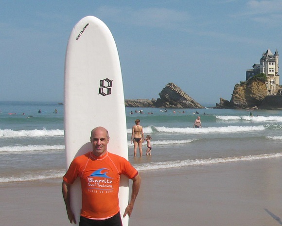 My surfing lesson on the Plage de la Côte des Basques is with Philippe Beudin, director of Biarritz Surf Training, one of nine surfing schools in Biarritz.