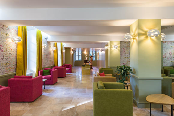 An up-and-coming hotel group decides to make a move on a historic rural inn, expand the building, triple its number of rooms, install a spa and add a conference center. With a project like this, there’s a lot that can go amiss on the aesthetic side, but the Marseille-based Maranatha Group has pulled it off with panache.