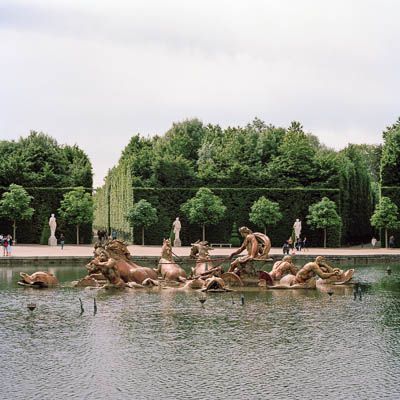 The foundation of André Le Nôtre’s creation was shear manpower; millions of men, regiments even, were involved in transforming the landscape and diverting water here. Chariots and wheelbarrows containing countless tons of earth were required to transform the prairies and swamp land which originally constituted the Domain of Versailles. Trees were brought to Versailles from all over France to stabilize and maintain this earthly base, transforming flatlands into hilled woodland. Andre Le Nôtre worked with subtlety and mathematical know-how, tried and tested at the Tuileries Gardens and Vaux-le-Vicomte, to create illusions of perspective which evolve as the garden unfolds.