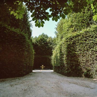 André Le Nôtre’s genius is particularly evident in the walls of the Sun King’s “outdoor palace.” Masses of hedges form bosquets, behind which follies and fountains reveal themselves like little theaters or tableaux vivants. Walking through the gardens, one is struck by the density and size of these thickets and the quantity of trellis work that prevents the untamed forest areas from invading the paths. While providing shade, these geometrically trimmed vegetal walls protect from wind and give shelter to birds and small wildlife. It is interesting to notice today that the areas of the garden that are in the process of being replanted are initially delimited by trellis work, as if the first step in the garden’s construction.