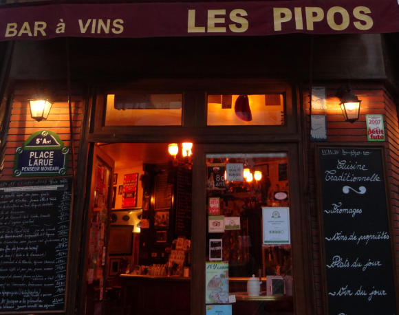 The other kind of traditional wine bars are the non-descript café-bars, which might also serve cooked food during restaurant hours. These are places without airs, and you needn’t feel that you’re going slumming to go enjoy them since they exist throughout the city, including in the well-trodden districts of Paris, e.g. Les Pipos, 2 rue de l’Ecole Polytechnique, 5th arr., or Au Père Louis, 38 rue Monsieur le Prince, 6th. No “leather-bound [wine] menu” here, No need to know the difference between a château, a domaine and a clos or between the weather conditions in 2007 and 2008, but rather a choice between Burgundy, Bordeaux, Cote du Rhone, and maybe a Gaillac and a Sancerre. And if that’s too complicated then all you really need to know to get a drink is that rouge is red, blanc is white, and rosé is plonk.