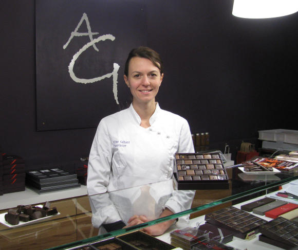 Aline Géhant’s rise in the ranks of chocolate-makers took a major leap when she won the Young Talent Award at Paris’s chocolate trade show, le Salon du chocolat, in October 2011. That award and a taste for good chocolate (I’d selected a light dessert at Le Bain-Marie) had brought me to her shop. But it wasn’t the taste of the chocolate that first led Aline Géhant to her craft at the age of 25. “I fell in love with the material,” she said. Working with only one apprentice, she still very much has her hands in it.