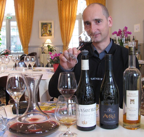 Michel Blanc represents the winegrower of this Chateauneuf-du-Pape with infectious brio. His title is Director of the Federation of the Unions of Chateauneuf-du-Pape Producers (Fédération des Syndicats des Producteurs de Châteauneuf-du-Pape). That sounds stiff and officious, but Michel Blanc comes across as a joyful wine aficionado who’d be happy to swill any wine with you (and you with him) at a wine festival.