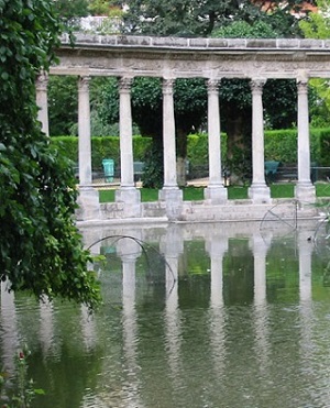 Abraham and Nissim elected to live in what was then becoming one of the most exclusive quarters in the capital, the area around Parc Monceau. Through the 1860s and into the 1870s, members of the imperial aristocracy and of the haute bourgeoisie built stately mansions surrounding the park’s genteel greenery and theatrical décor. Here one could stroll by a colonnade of Corinthian columns in partial ruin, watch duck in the oval pond of a naumachia (the basin Romans used for mock naval battles), walk over a Chinese bridge and visit an Italian grotto and an Egyptian pyramid. The sight of well-dressed (faux) explorers visiting (faux) ancient ruins on an afternoon in Parc Monceau might have been reminiscent of paintings by 18th-century French painters Watteau, Fragonard, Lancret or Bouchet found in the Louvre—or on the walls of neighborhood residence since living with great wealth now required a backdrop of great art and perhaps some antique furnishings.