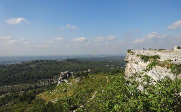 In 1954 three Michelin stars landed on Les Baux de Provence, an isolated hilltop aerie 9 miles (15k) north of Arles. They fell specifically on Oustau de Baumanière, a hotel/restaurant nestled in the trees below the fortress. The personal automobile gave gourmets the means to get there by way of the winding road that snakes through dramatic white walls of rock leading to Les Baux, testament to the mining for bauxite, a mineral that took its name from the village. Offering magnificent glimpses of the Luberon, Mont Ventoux, the Rhône Valley and the local vineyards, the route alone makes for an exhilarating approach.