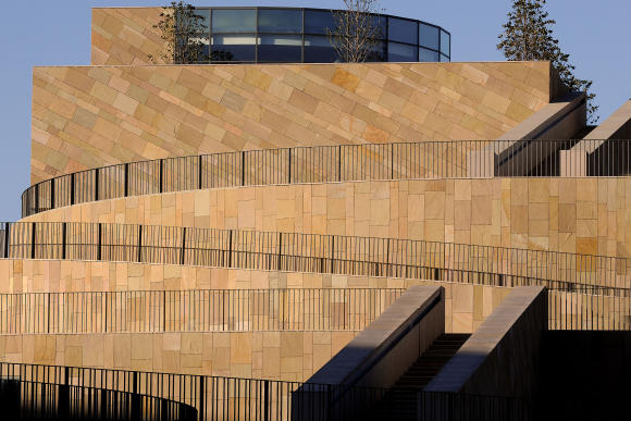 Thus the curved, amphitheater-like entrance to the 1,366-seat building appears to nestle into its site, its stones carefully chosen to mimic the changing colors of Mont Sainte-Victoire. (Fact: The proximity of train tracks meant that the whole structure had to be mounted on springs.)