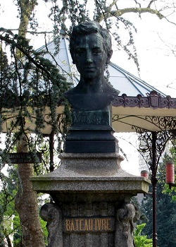 On a pedestal in the park in front of the train station, a bust of Rimbaud, forever young, indicates the titles of his most famous poems (Bateau Ivre, Voyelles) but refers to him as an explorer in Africa. Rimbaud’s sketchy portrait photograph is used to promote sights and businesses throughout town, exploited for a glory that he would have denied it. Rimbaud fled Charleville at the age of 17, running away from the family home for Paris, where he flirted violently with poets and drank excessively. For several years he returned periodically, mostly against his will, before definitely turning his back on the town at the age of 21.