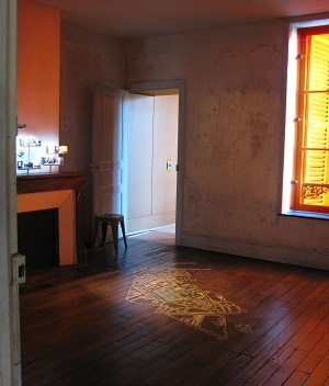 Fully prepared to be let-down upon entering the empty little rooms upstairs, I instead felt inspired by the near-void. Here in the House of Elsewheres, where I was the only visitor, the rooms were empty only in the sense that they lacked furniture and fabric. In their place they presented through sparse images, indecipherable maps and faded walls an invitation to travel. Here, I felt that desire to be away—not necessarily from here but simply to be away, to travel, to discover—to be a part of something else—to be embraced by accomplished poets, to stretch his freedom, to partake in rowdiness, to create poetry, to find soul mates, to find lovers, to create a life, to work in other lands—to explore.