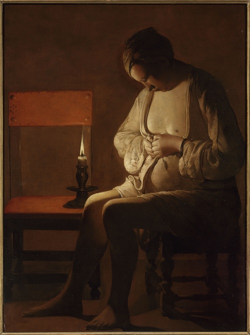 Beginning with delicate images (Dürer, Primatice, the School of Fontainebleau) and barreling towards Georges de La Tour’s remarkable Woman Catching a Flea, the show segues into portraits of better-known bathing beauties like Pierre Bonnard’s Marthe (painted in an era when dedicated bathrooms became havens for private, relaxing escapes) and winds up with ironic, post-modern photos and c-prints signed by Alain Jacquet, Erwin Blumenfeld, and Bettina Rheims.