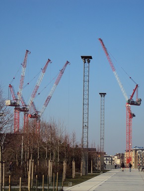 Journalist Corinne LaBalme, a resident of the Batignolles Quarter of Paris’s 17th arrondissement, puzzles over the construction of a 525-foot glass tower that will house the Tribunal de Grande Instance (TGI), the centerpiece of a 123-acre development on the northeastern edge of the city.