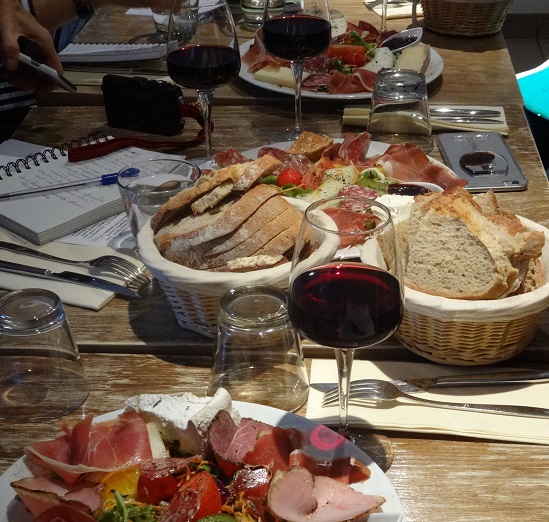 That’s my motto when selecting restaurants for many visitors. And there’ve been a lot these past few weeks: friends, relatives, friends of friends, friends of relatives, classmates, fundraisers, writers doing research, travelers taking most excellent tours. We’ve had lunch together, dinner, we’ve been to wine bars, had picnics, stopped for pastries, chocolate, Bertillon sorbet.