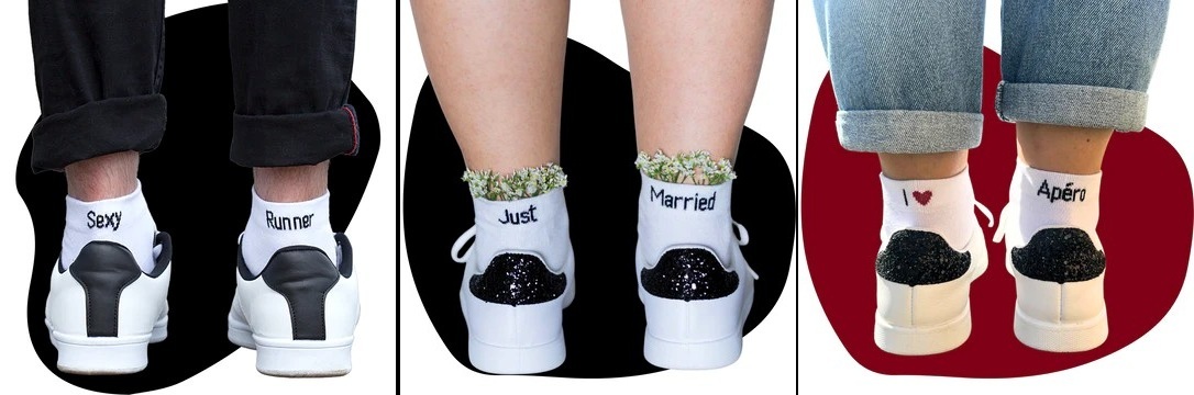 KlaK used to be call Sorry or Not Sorry, which derived that playful name from its message socks with half of the text above the heel to the left and the other half to the right. The messaging, mostly in English, continues under the catchier brand name KlaK. For example, Just + Married (perfect for the Paris honeymooner), Girl + Power, I ♥ + Apéro (for those who celebrate wine o’clock), Best + Friend, Need + Love, Sexy + Runner, Champagne + Please and Need + Coffee, among others. Founder Alice de Guyenro says that she launched her products in 2019 in her own image, as a shy gal daring to draw attention to herself, or at least her feet. Her products are most in black and white. The full range of KlaK socks can be read and purchased on her online shop, which also indicates the locations of physical shops that carry KlaK.